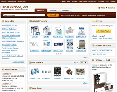 Asiamachinery.net is a interactive B2B e-platform and source for the global machinery industry; offering machinery related information and tradeshows to a global community of over 200, 000 buyers.More Details