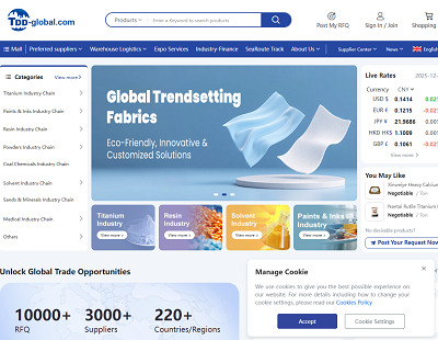Tdd-global.com is China's leading B2B platform for the chemical industry, connecting global chemical suppliers and buyers. Discover a comprehensive range of chemical products, streamline inte...More Details