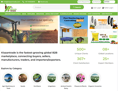 KisaanTrade.com is world's largest agriculture b2b online marketplace that helps manufacturers, suppliers and exporters trade with each other on a common, trusted and transparent platform.Kisaantrade.com – An online platform that c... More Details